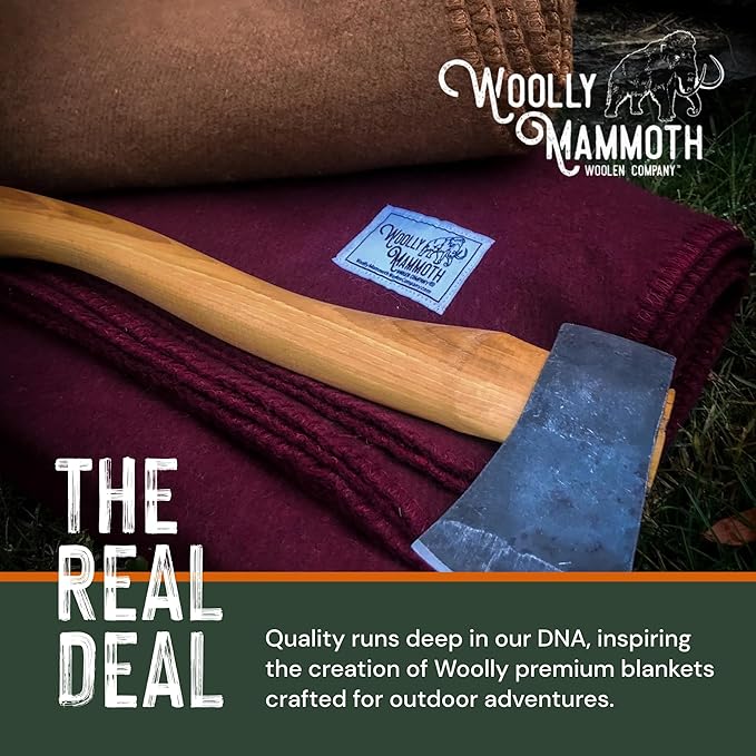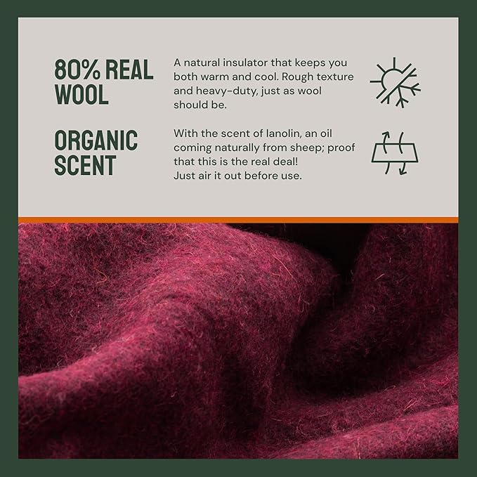 Woolly Mammoth Merino Wool Blanket - Large 66" x 90", 4LBS Camp Blanket | Throw for The Cabin, Cold Weather, Emergency, Dog Camping Gear, Hiking, Survival, Army, Outside, Outdoors – Burgundy