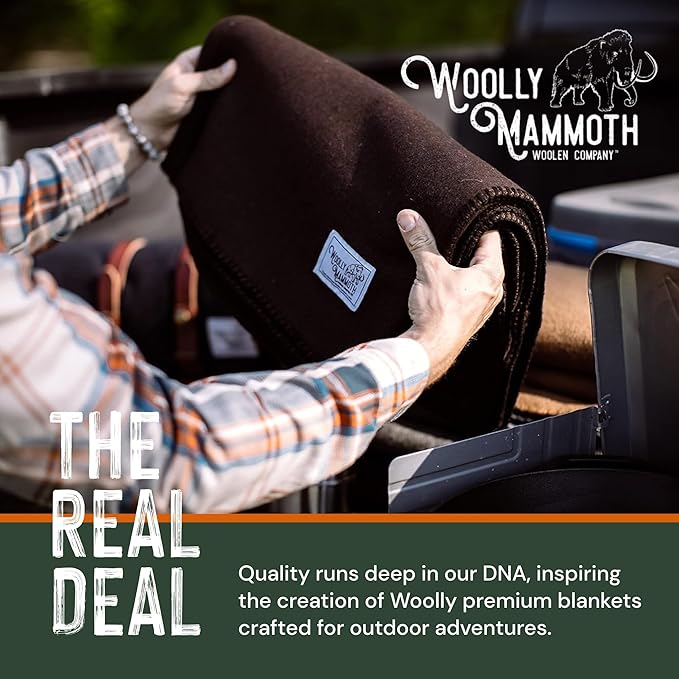 Woolly Mammoth Merino Wool Blanket - Large 66" x 90", 4LBS Camp Blanket | Throw for The Cabin, Cold Weather, Emergency, Dog Camping Gear, Hiking, Survival, Army, Outside, Outdoors – Brown