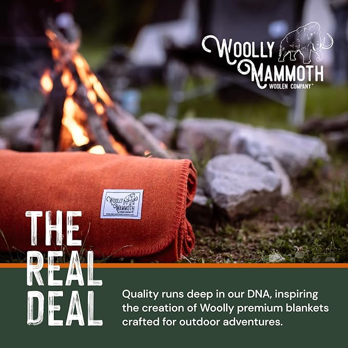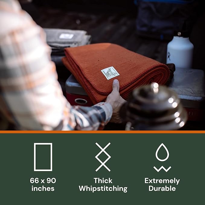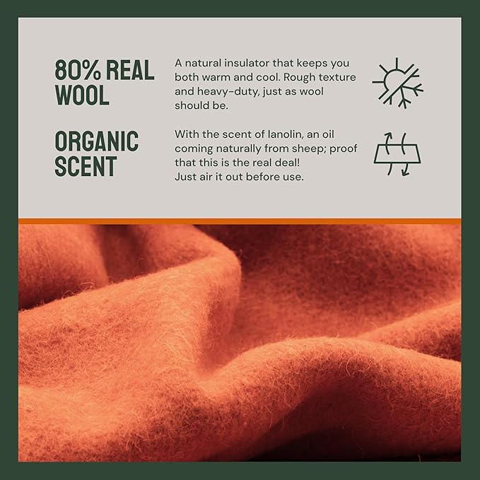 Woolly Mammoth Merino Wool Blanket - Large 66" x 90", 4LBS Camp Blanket | Throw for The Cabin, Cold Weather, Emergency, Dog Camping Gear, Hiking, Survival, Army, Outside, Outdoors – Orange
