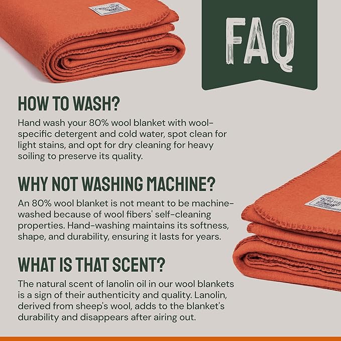 - EASY MAINTENANCE: Our blankets are low-maintenance, thanks to their self-cleaning wool fibers. Spot cleaning and a good shake go a long way. Machine washing may damage them due to the high-quality wool content, causing shrinkage and a loss of softness. Treat them with the love and care they deserve!
