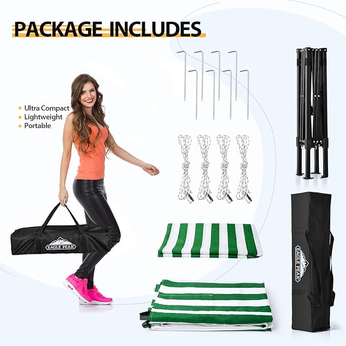 - EASY TO SETUP AND PUT AWAY: The EAGLE PEAK pop up system is more flexible and makes setup easy. The frame glides when opening and closing, enabling one person to easily open and close the canopy .
