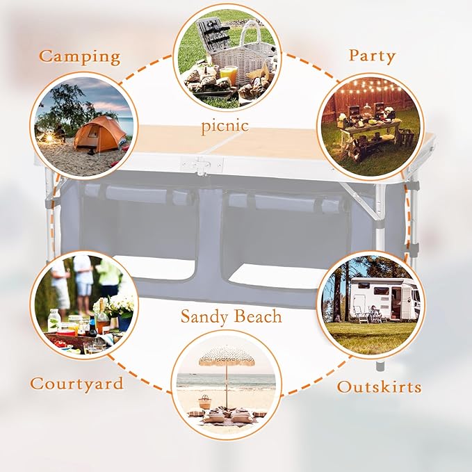 - Ideal for camping, picnics, tailgating, or backyard barbecues, this portable table is a versatile addition to your outdoor gear collection.;Note:the table can't stand the rain