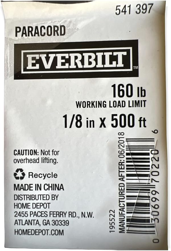 - Paracord 160 Lb Working Limit 1/8x 500 Ft. Red