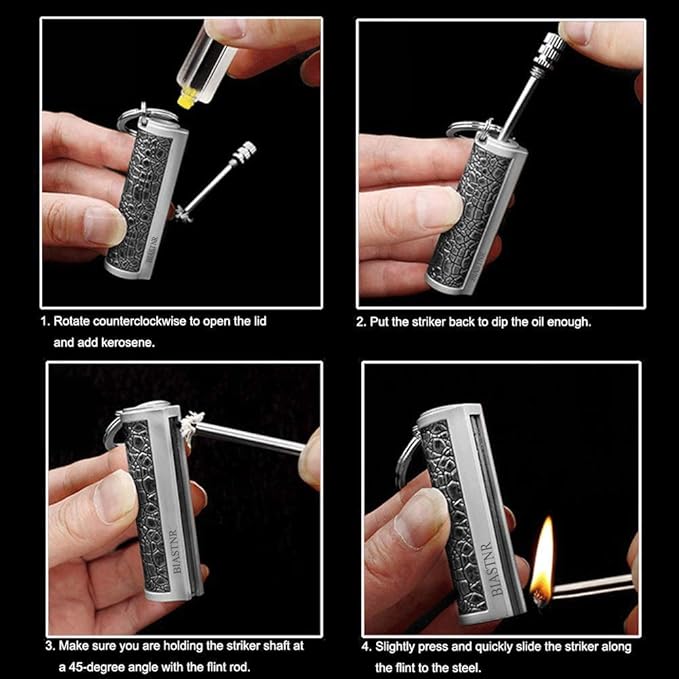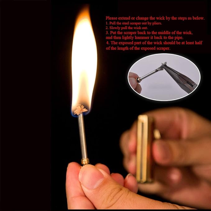 - ATTENTION - Need to add a small amount of fuel (gasoline or kerosene) before using the igniter,let the match stick infuse for 1-2 minutes until the cotton core completely absorbs the fuel.( Note: According to airmail regulations, lighters product do not allowed to contain fuel).