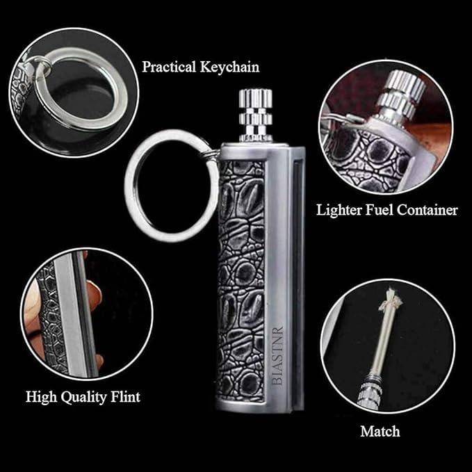 Permanent Match Matchstick Fire Starter - 2 Pack, Keychain Flint Metal Immortal Lighter, Kerosene Refillable Flint Lighter for Camping Hiking