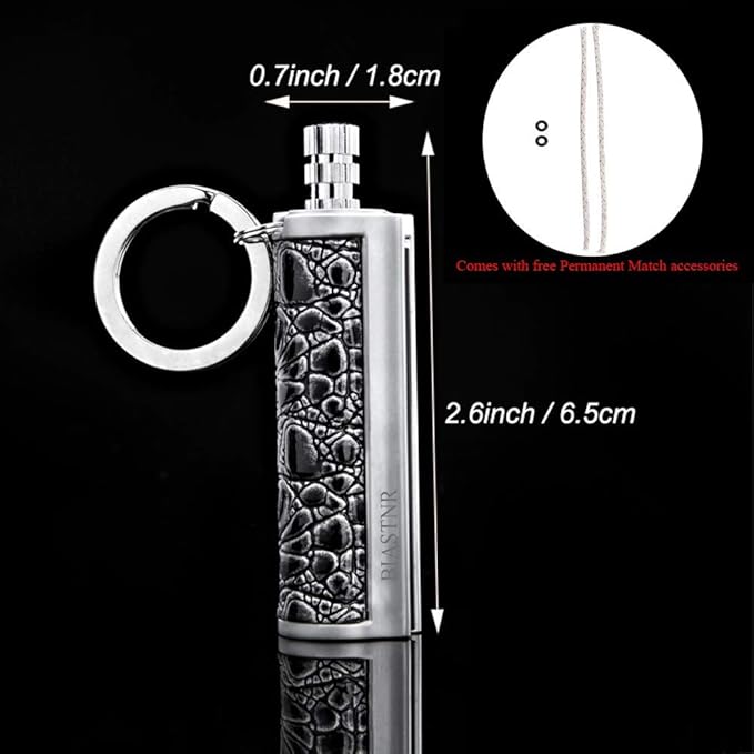- DURABLE AND STRONG MATERIAL - This permanent match keychain is made of metal material, size: 2.6 x 0.7inch / 6.5 x 1.8cm.