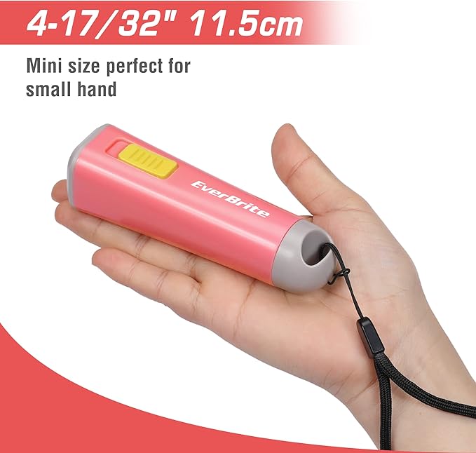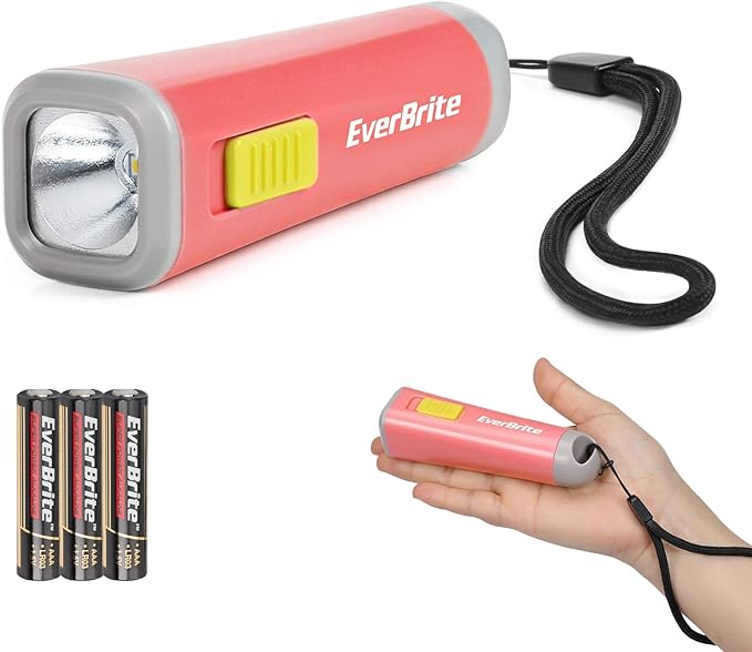 EverBrite Kids Flashlight, Mini LED Flashlight, Plastic Torch Use for Emergencies, Camping, Outdoor with Lanyard 3AAA Battery Included, Coral