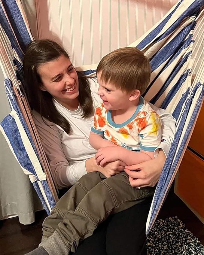 - PET, KID, FAMILY-FRIENDLY FABRIC: Our outdoor hanging chair is tightly woven and constructed with comfortable, long-lasting colorfast cotton thread. Take a break from your stressful day and relax with this soft, sponge-like hammock swing! This lounge chair is easy to set up and designed for long-lasting enjoyment