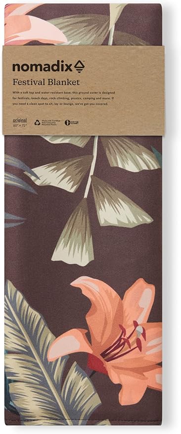 Nomadix Festival Blanket - Perfect for Picnics, Camping, & Lawn Seating - Plush Top & Water Resistant Base - Made with Post Consumer Recycled Materials - Palms Night - 60x70
