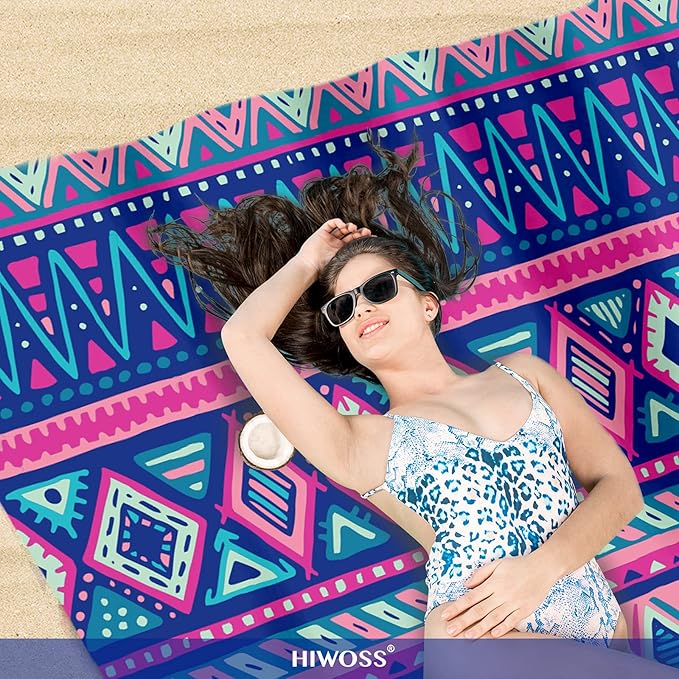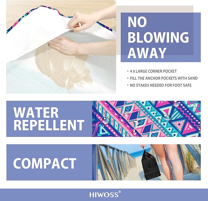- 🌊【UNIQUE DESIGN, 4 CORNER POCKETS】The eye-catching designed beach blanket, with quality in appearance, will make you stand out on the beach! You can easily find your family and friends on the beach without worrying about getting lost. At the same time, the beach mat is designed with four built-in corner pockets that prevent the blanket from blowing away.