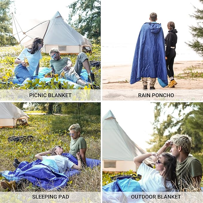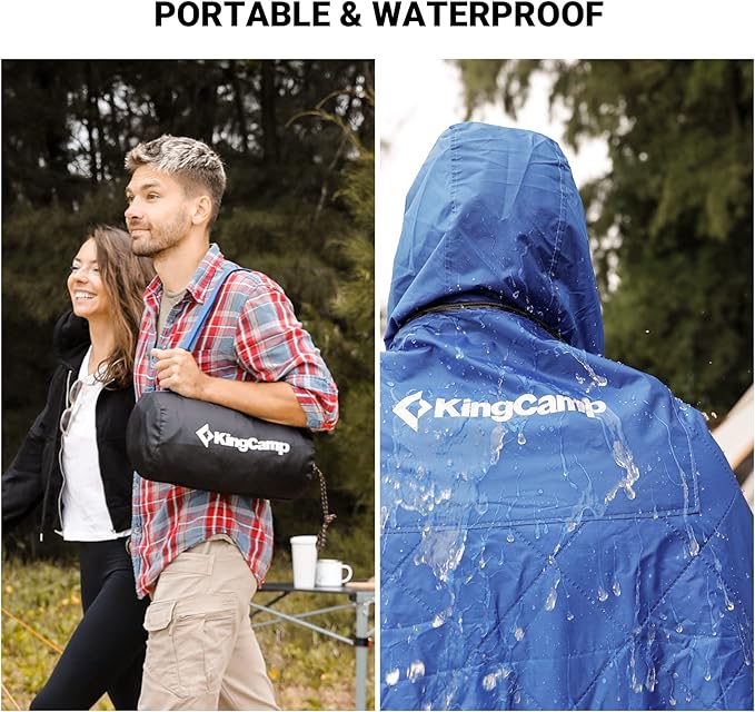 - 【Multifunction Stadium Blanket 】KingCamp waterproof blanket can be used as a picnic mat to keep out the cold and dampness of the ground, as a sleeping bag when camping, this thick hooded blanket can also be used as a poncho for rain, snow and wind ,One blanket meets your multiple needs.