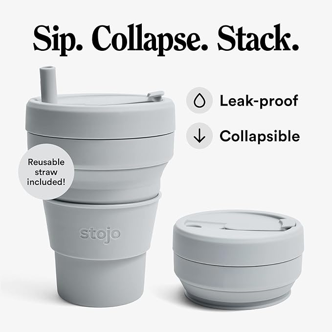 - Collapsible cup: It’s literally never been easier (or more fun) to bring your own reusable cup! The 24 oz Cup is our largest size and collapses down to just 2.5 inches. Whether you’re sipping coffee or a smoothie, this cup is perfectly portable for your commute, camping trips, power smoothies, and travels. When you’re done, simply remove the heat sleeve, open the tab, and collapse it down. Leak-proof, includes a straw, fits standard cupholders, and get a load of that Cashmere Gray color!