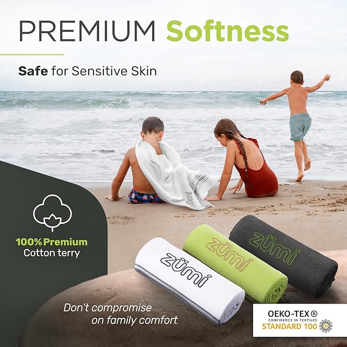 Zumi 100% Cotton Quick Dry Large Travel Towel - Soft, Thin, Compact, Highly Absorbent, Lightweight Camping Towel for Beach, Gym, Bath, Shower, Swimming, Dorm, RV - White