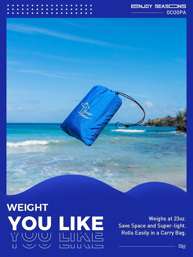 OCOOPA Extra Large Beach Blanket, Sand Free, Large Oversized Camping Mat, Comfortable Parachute Nylon, Cozy& Chic, Compact& Light, 4 Stakes&1 Travel Bag, S09