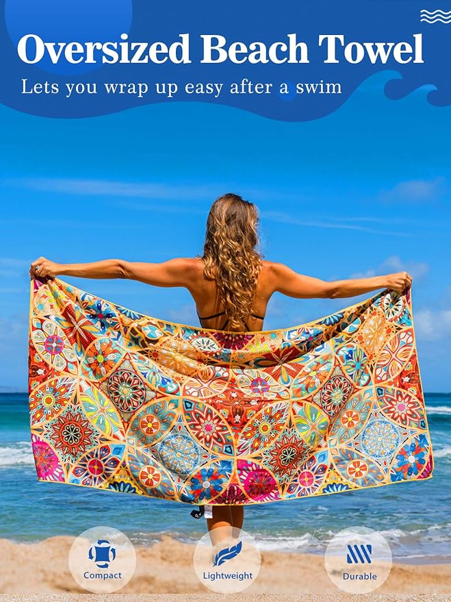 OCOOPA Microfiber Beach Towel - Oversized 80" x 57" - Quick Dry, Sand Free - Lightweight & Compact - Large Beach Towels for Swimming, Camping, Holiday