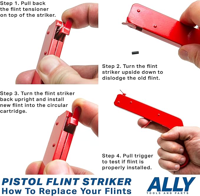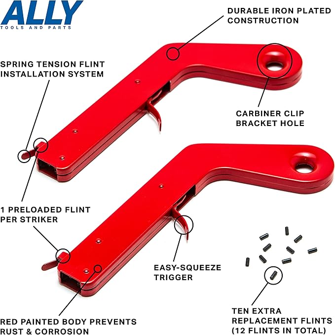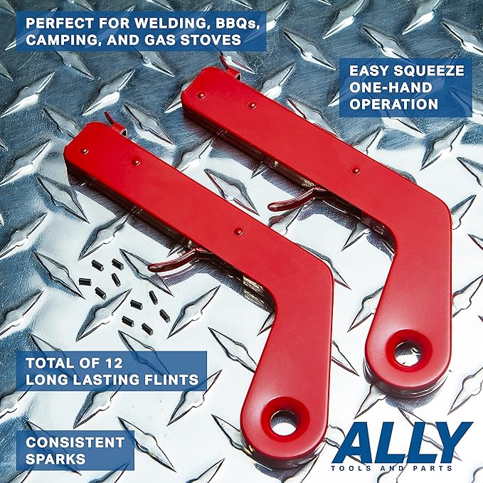 ALLY Tools 2 PC Pistol Rock Style Flint Striker with 12 Striker flints - Perfect as a Welding Striker, Flint Lighter, Camping Stove Striker, Torch Striker, Spark Lighter, Striker Lighter, and Striker