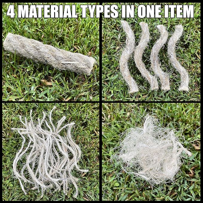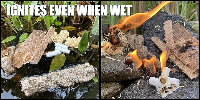 - Included Components : Wood Wool and Cotton Plugs, Kindling Sticks and Compressed Fiber Brick, Ferro Rod and Pocket Bellows, Fat Rope and Hemp Match, Nylon MOLLE Bag Wood Wool and Cotton Plugs, Kindling Sticks and Compressed Fiber Brick, Ferro Rod and Pocket Bellows, Fat Rope and Hemp Match, Nylon MOLLE Bag