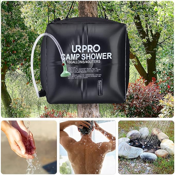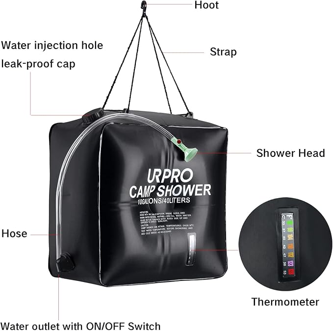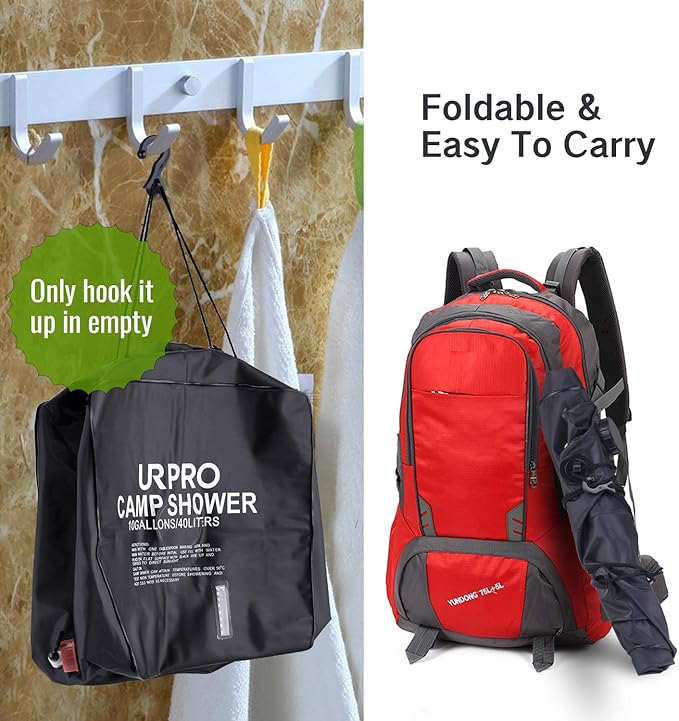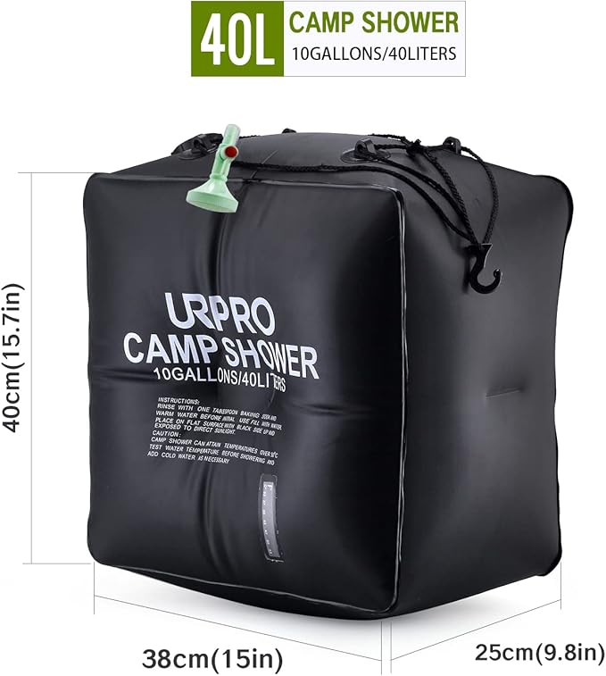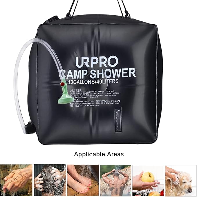- JUMBO WATER CAPACITY - This jumbo size bag can easily carry up to 10 GALLONS (40Liters) water for showering at remote areas! A nice and refreshing shower anywhere!