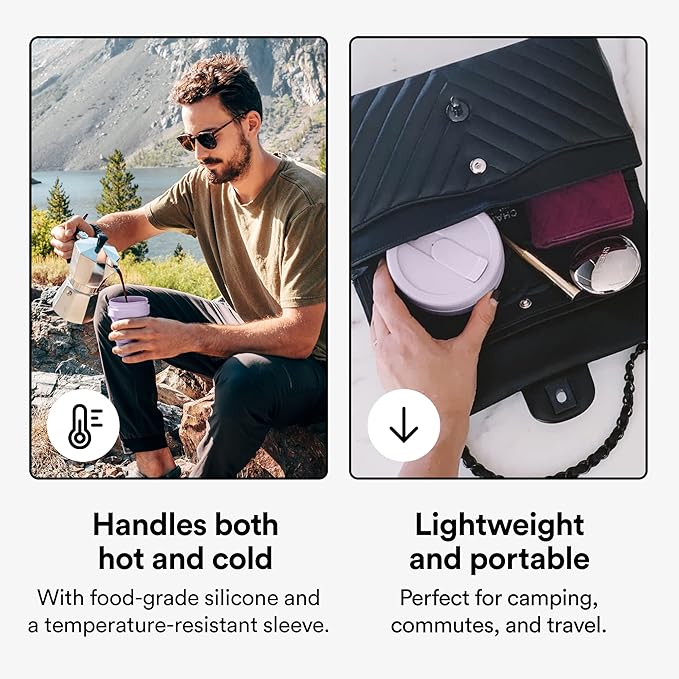 - Handles both hot & cold: Whether it’s hot tea or iced lattes, Stojo’s food-grade premium silicone and temperature-resistant sleeve can handle it all.