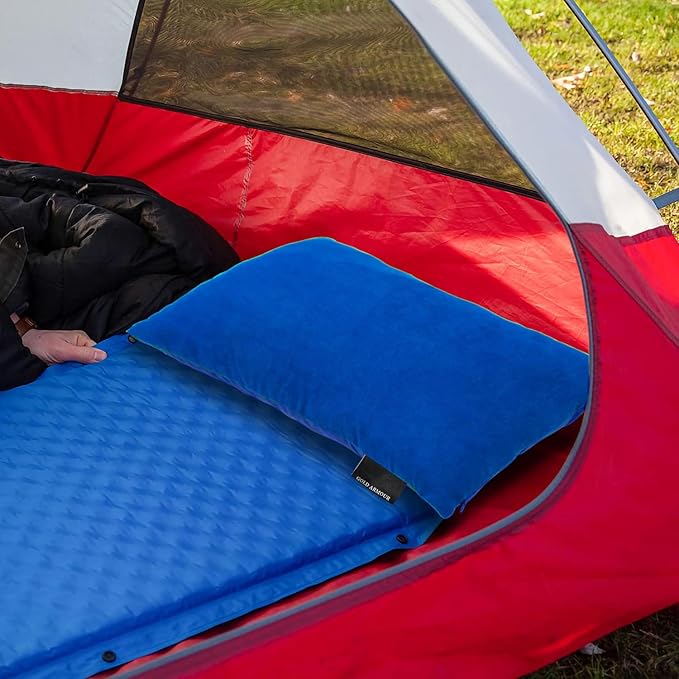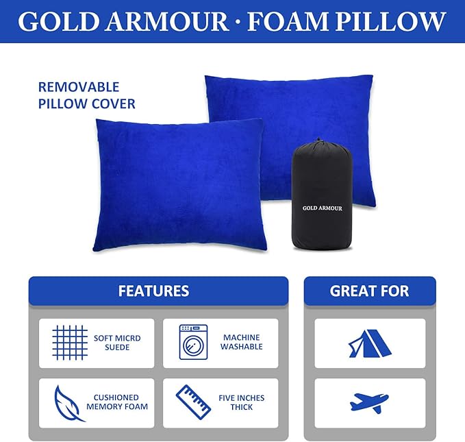 Gold Armour Camping Pillow - Backpacking and Travel Pillow for Sleeping and Traveling - Compressible Memory Foam Travel Pillow - Essential Camping Accessories Gear (Medium 14x18in, Blue)