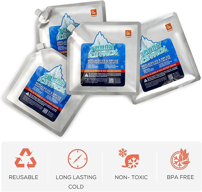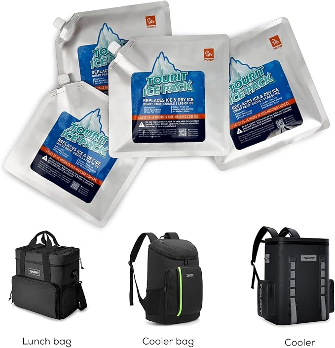 TOURIT Reusable Ice Pack for Coolers Long Lasting Cooler Ice Packs for Cooler Bag Lunch Bags/Boxes, Cooler Backpacks, Freezer Packs for Coolers