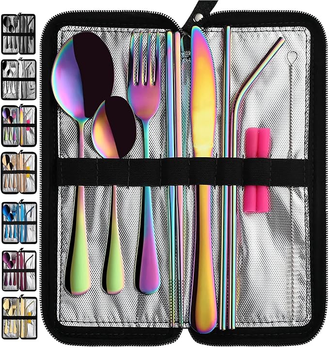 - ⭐ [ HEALTH AND ENVIRONMENT FRIENDLY ] : Protect the environment and refuse disposable utensils! Travel utensils set is made of high-quality food grade stainless steel. Our eco friendly portable cutlery set is durable and reusable for daily use. Easy to clean and dishwasher safe.