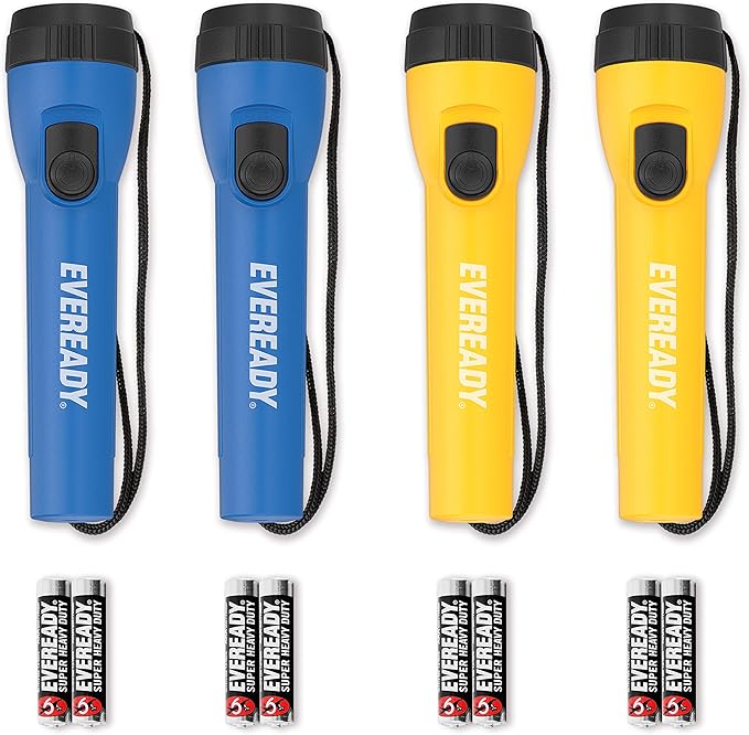 EVEREADY LED Flashlights (4-Pack), Bright Flashlights for Emergencies and Camping Gear, Flash Light with AA Batteries Included, Blue/Yellow (4-Pack)
