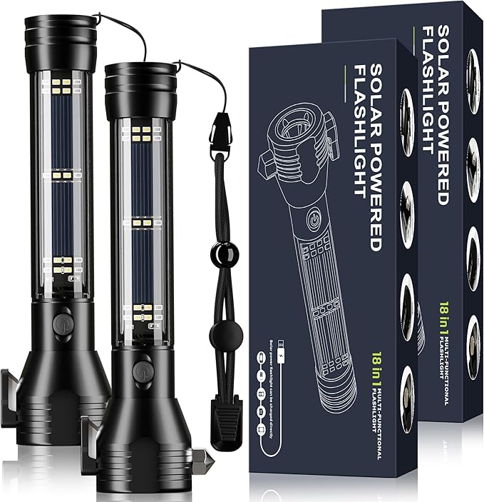 - [IPX5 waterproof] Solar flashlight is made of aluminum alloy material, this bright flashlight can work normally even in rainy and cloudy days, which makes it more suitable for outside camping and hiking.