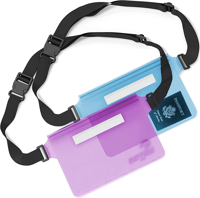 Waterproof Fanny Pack Pouch (2 Pack) for Men & Women Dry Bag Water Resistant with Adjustable Waist Strap - Protects Valuables at Water Sports (Blue & Violet)