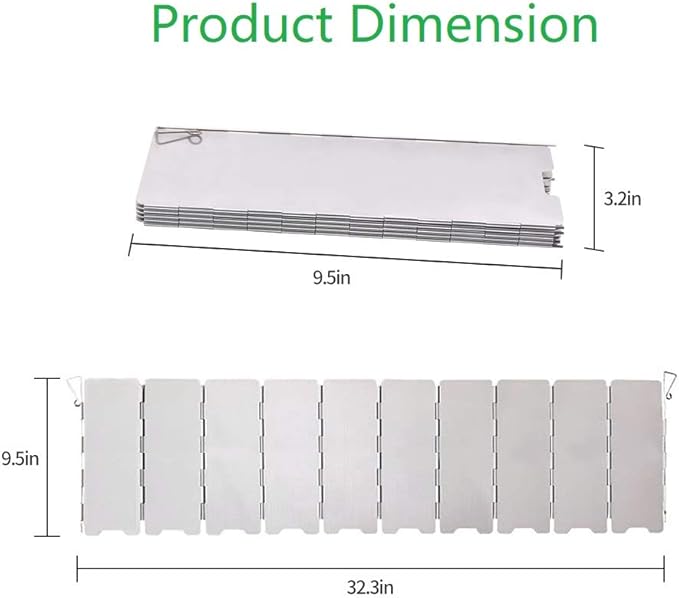 - 【Tall and Large】- The unfolded size of the stove's windscreen is 32.3" x 9.5", which is windproof and large enough to be used for both gas knapsack stoves and wood-burning stoves