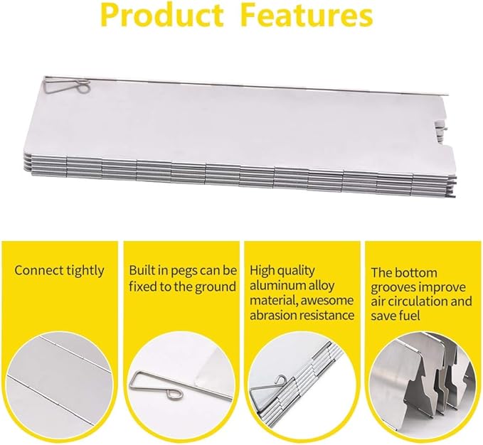 - 【Removable Windscreen】- The stove windshield has 10 removable plates, which can be removed/folded to different size to be installed around different sizes of stove