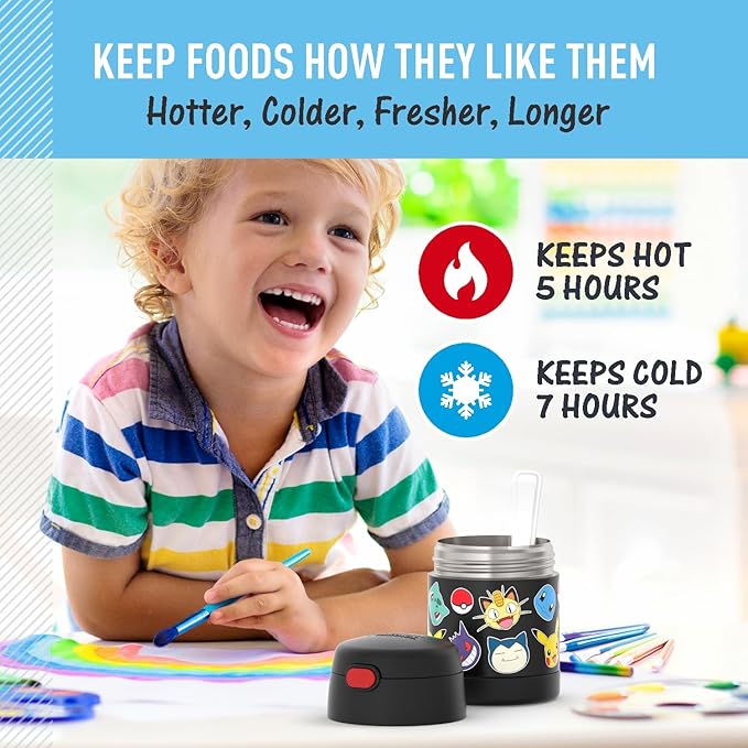THERMOS FUNTAINER 10 Ounce Stainless Steel Vacuum Insulated Kids Food Jar with Spoon, POKEMON