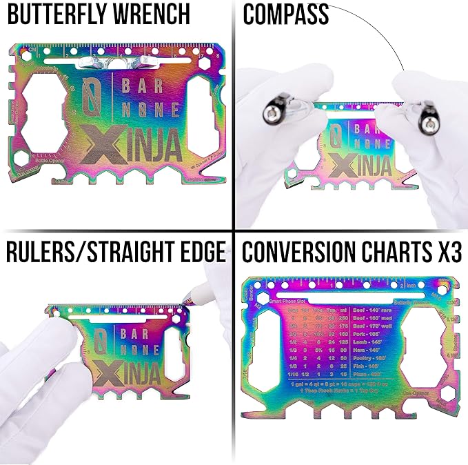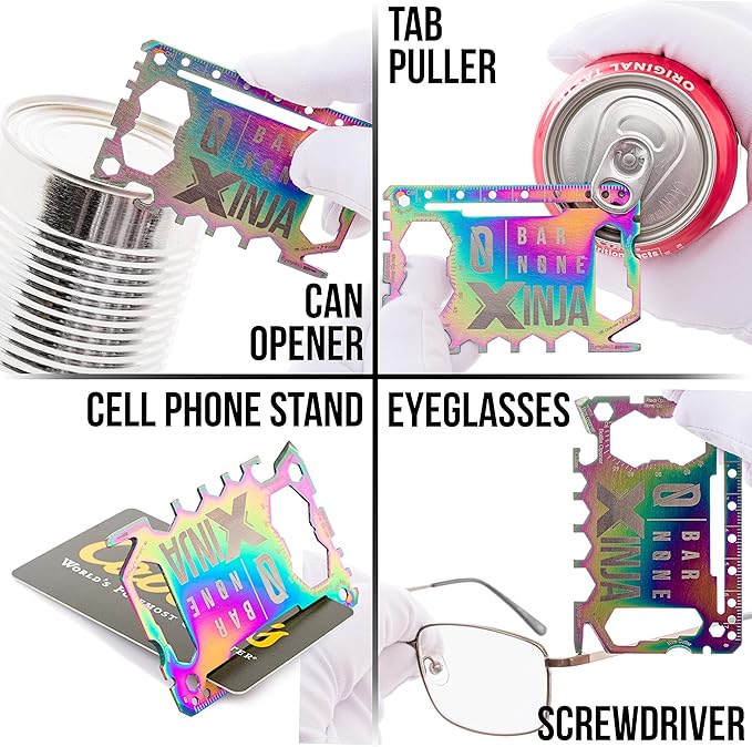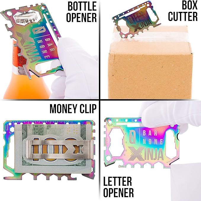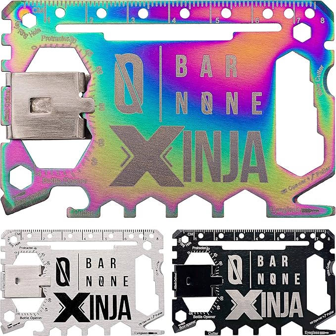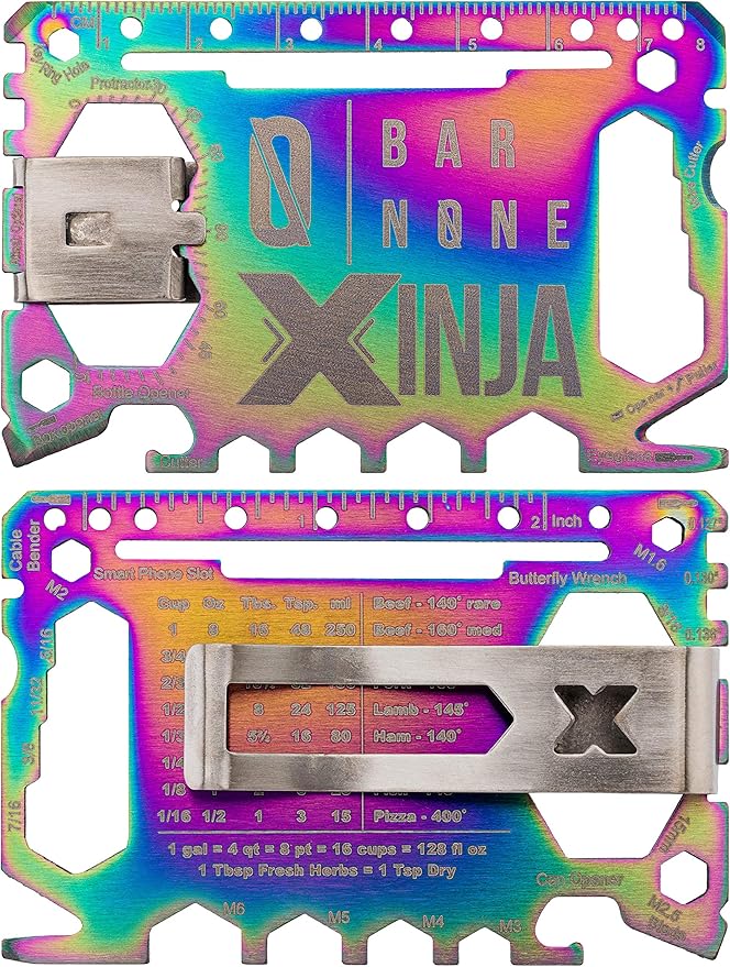 50 in 1 Credit Card Multitool Wallet Multi Tool Money Clip Clips Xtreme Ninja EDC Gerber Leatherman Knives Utility Knife Slim Wallets Minimalist Survival Everyday Carry | BAR NONE Xinja, Rainbow