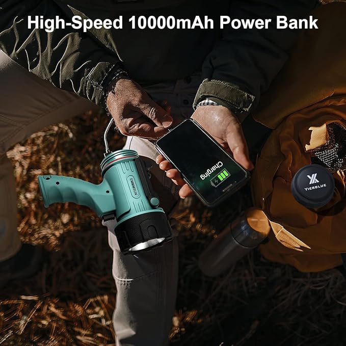 YIERBLUE Rechargeable Spotlight with 200,000 LM LED, IP67 Waterproof Handheld Flashlight Searchlight with Detachable Red Light Filter, 10000mAh Long Running (Green)