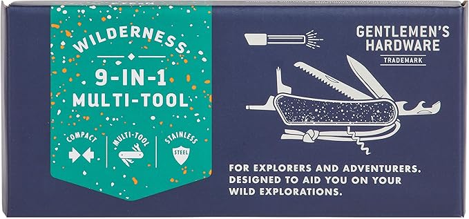 Gentlemen's Hardware - Wilderness 9-in-1 Multi-tool, Ideal for Camping, Hiking, & Other Outdoor Activities, Stainless Steel, Compact Handle, Versatile, Convenient