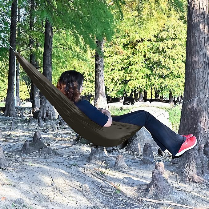 • EASY TO SET UP. Equipped with guyline tensioners that make setting up the gear hammock a complete breeze. Its unique design allows for faster adjustments that won’t slip and lock the suspension into place. It also includes paracord 550 that can hold up to 100 lbs of gear off the ground and away from dirt and moisture and can even double as a chair hammock.