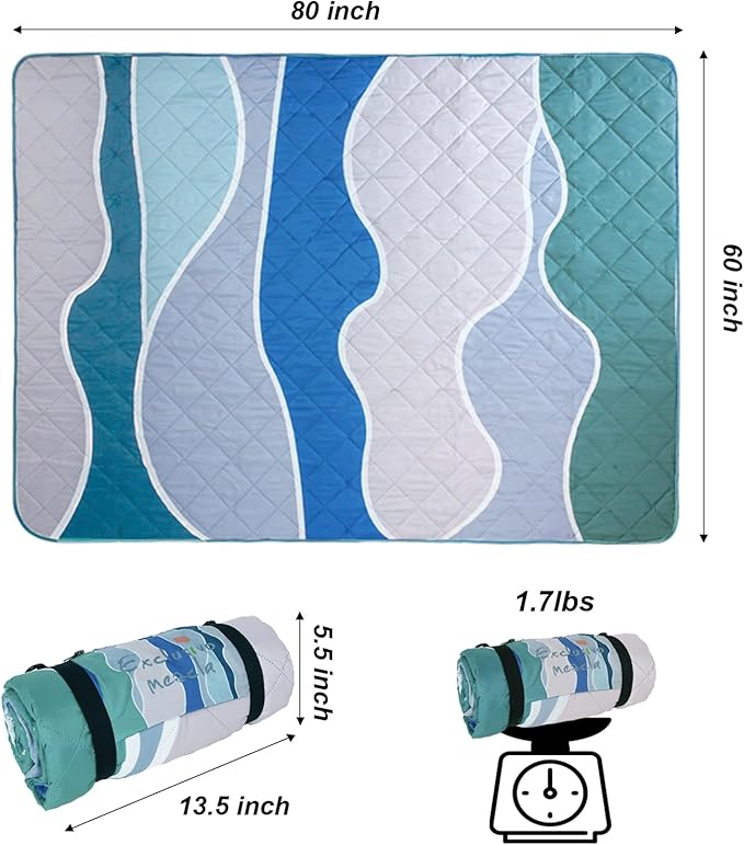 - Improve Velcor Straps: This picnic blanket is measured 60x80 Inch, the size of which is capable of creating enough space for family gathering and being a safe and cozy area for your pets to play on. We adopt consumer suggestions and improved the length of velcro strips to make rolling it up easier in a portable size
