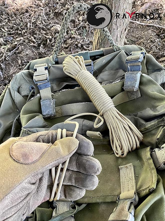 - ✔ 550-CORD FOR MILITARY AND CIVILIAN USE: Strong enough for use by NASA and the military, our paracord is also perfect for everday civilian uses. All-weather Ravenox paracord is the perfect lightweight multi-use tool to add to your bug-out bag or backpack for your next outdoor adventure. This survival cord can be used to create fishing line, tie-downs, replace boot laces or even use the inner core as sewing thread.