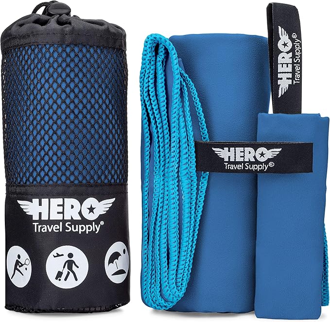 Hero Microfiber Towel for Travel, Camping, Beach, Gym – 24” X 48” (Includes Bonus Washcloth)