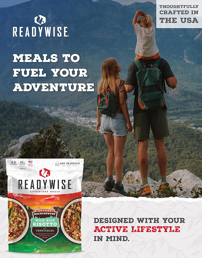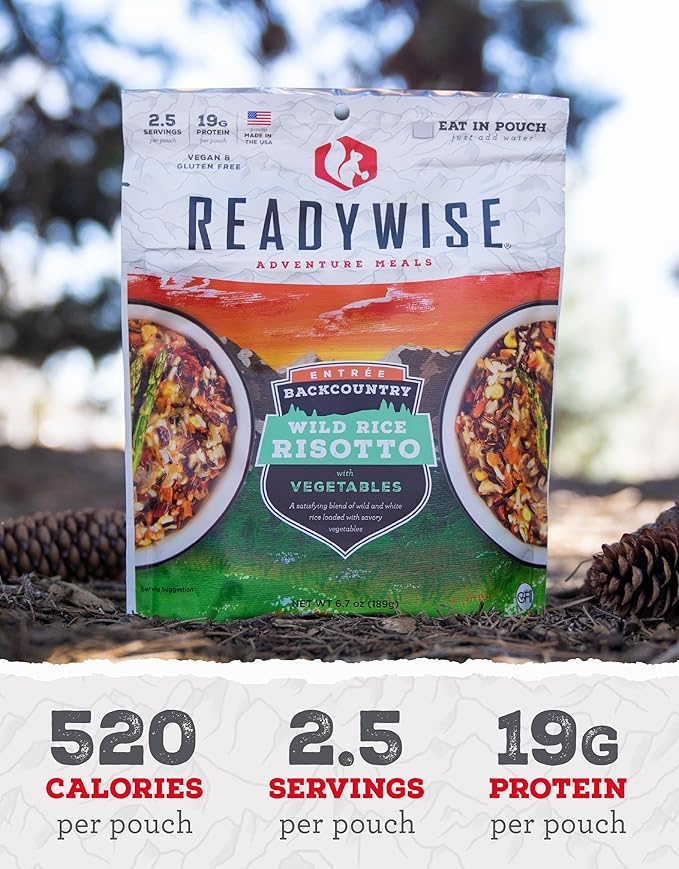 READYWISE - Adventure Meal, Wild Rice Risotto, 2 Servings, Pack of 1, Emergency Preparedness, Freeze Dried Food, MRE, Snack Pack or Emergency Food, Backpacking, Camping, Hiking, and, Survival Food