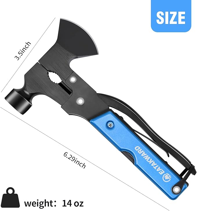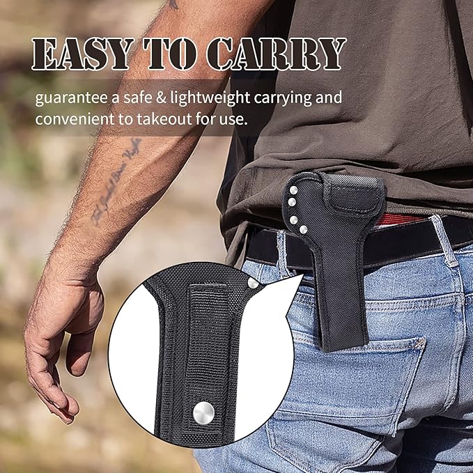 - 【Easy & Safe to Carry】Lightweight little multi-tool comes in a hard Oxford bag that secures the tool safety on your belt. When not in use, put our silicone protective cover on the axe and fasten the tail lock.