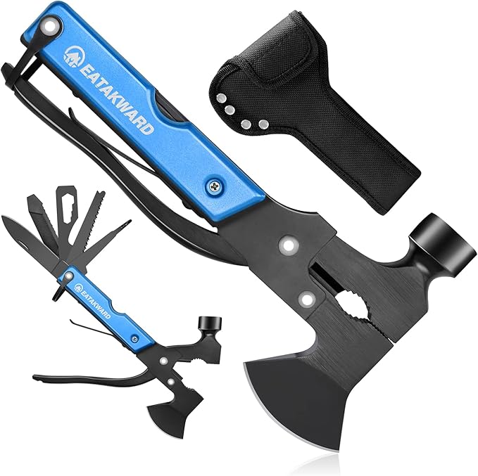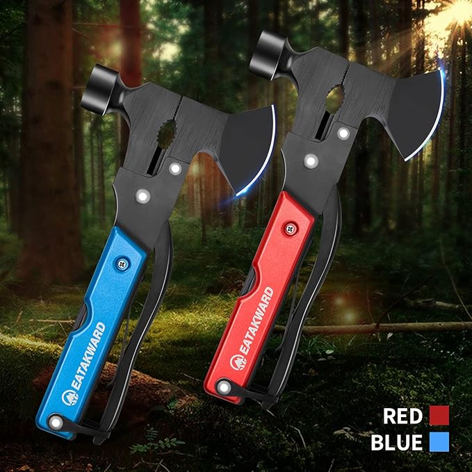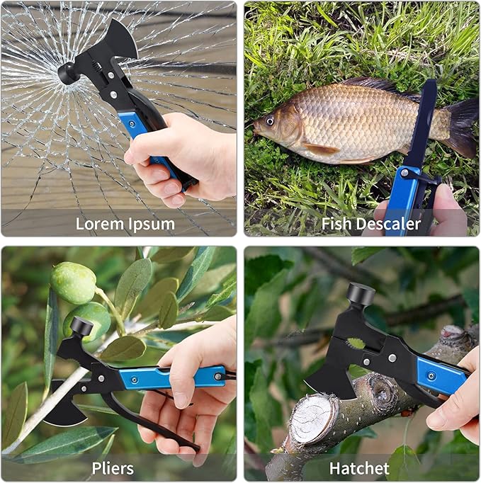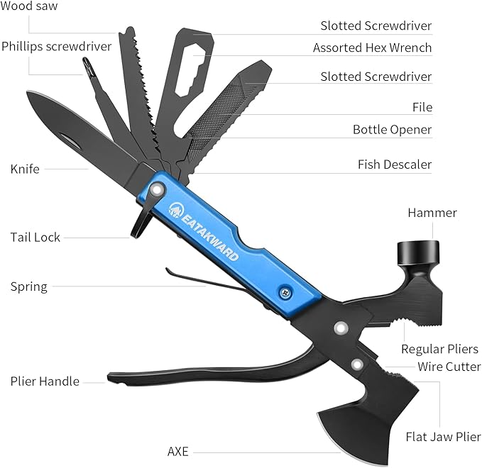 - 【17 Functions in One】 Contains Axe, Hammer, Wire Pliers, Flat Nose Pliers, Vise-Grip Pliers, Knife, Saw, Bottle Opener, Screwdriver, Cross Screwdriver, File, Fish Descaler, Hex Wrench, Spring, Handle.