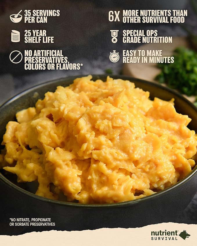 Nutrient Survival Vitamin Powdered Eggs Blend, Freeze Dried Prepper Supplies & Emergency Food Supply, 33 Essential Nutrients, Gluten Free, Shelf Stable Up to 25 Years, One Can, 70 Egg Equivalent