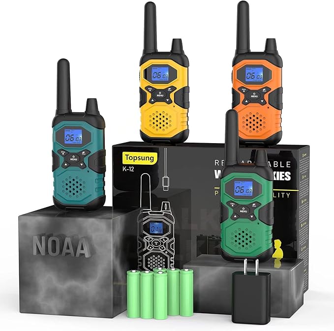 - 【Always Prepared With NOAA Alerts】:Stay a step ahead of nature with Topsung NOAA walkie-talkies, even when there's no cell service in remote areas. With our integrated National Weather Service, stay updated on all hazard weather channels. Act faster with alerts, granting you the vital moments needed to ensure your family's safety during unpredictable weather conditions