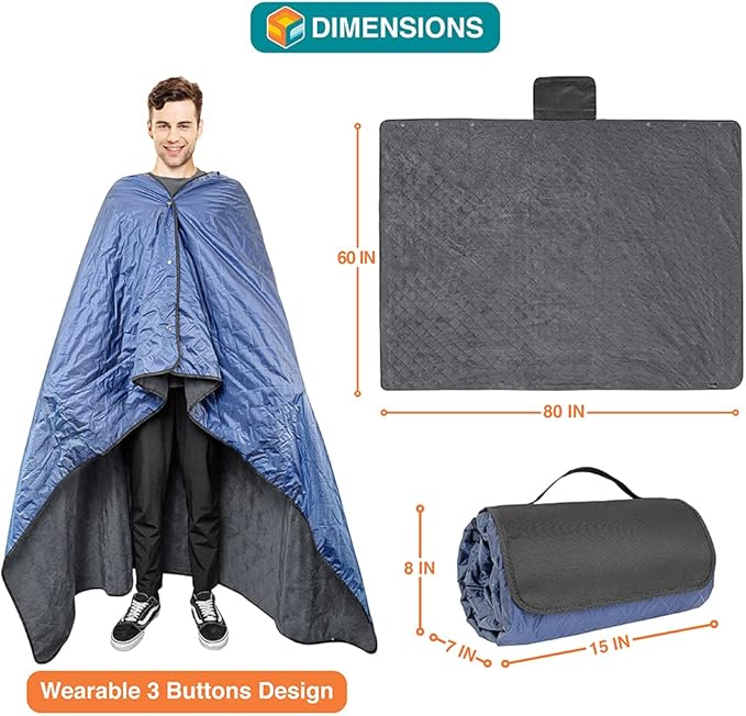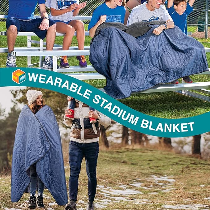 - REVERSIBLE AND WEARABLE: This sports blanket is reversible and the fleece blanket can be transformed into a waterproof poncho stadium blanket with our 3-button design to keep you cozy and dry at any sports game or festival. Big enough to share with a friend!
