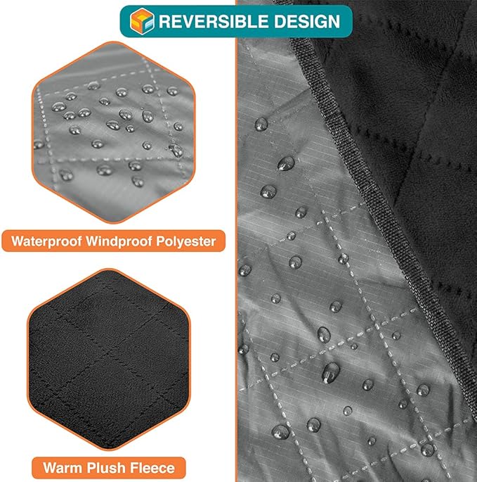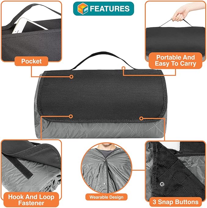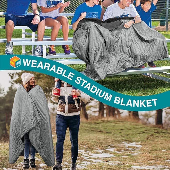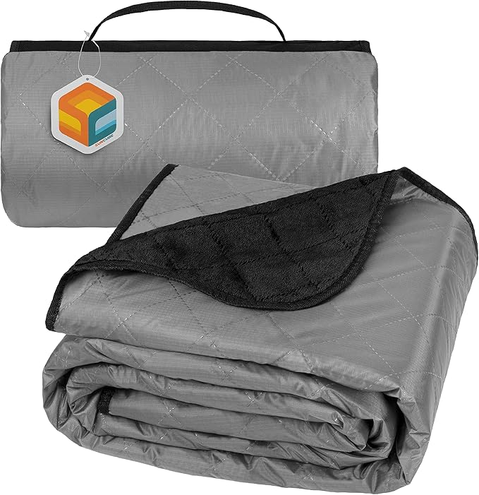 • 100% WATERPROOF AND WINDPROOF: This waterproof blanket outdoor has soft fleece on one side and waterproof taffeta polyester fabric on the back, keeping you dry as a picnic outdoor blanket This windproof stadium blanket can also be wrapped around you and your friends in wet cold weather. Perfect for camping, beach, sports, concert, festivals, hiking, road trips, car and even as a boat blanket!