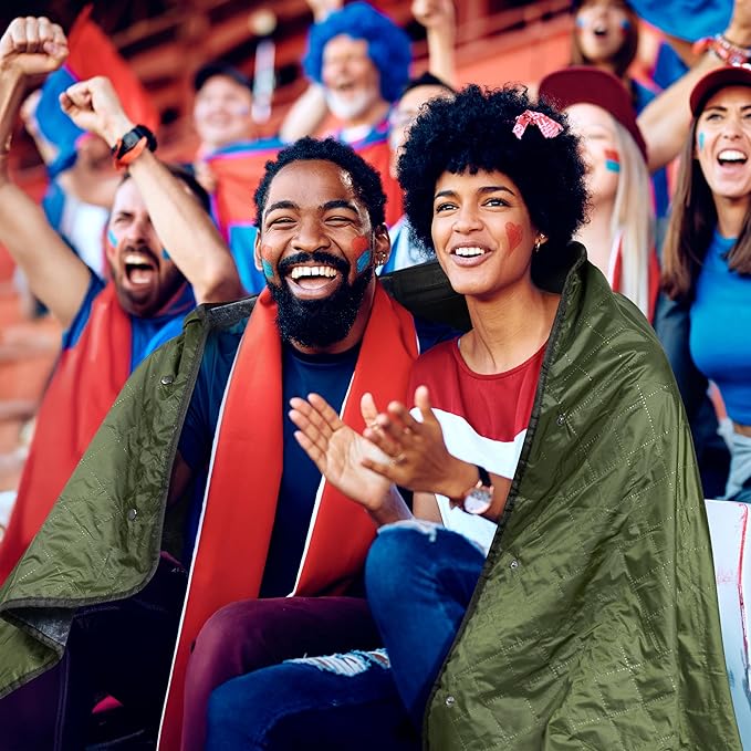 - REVERSIBLE AND WEARABLE: This sports blanket is reversible and the fleece blanket can be transformed into a waterproof poncho stadium blanket with our 3-button design to keep you cozy and dry at any sports game or festival. Big enough to share with a friend!