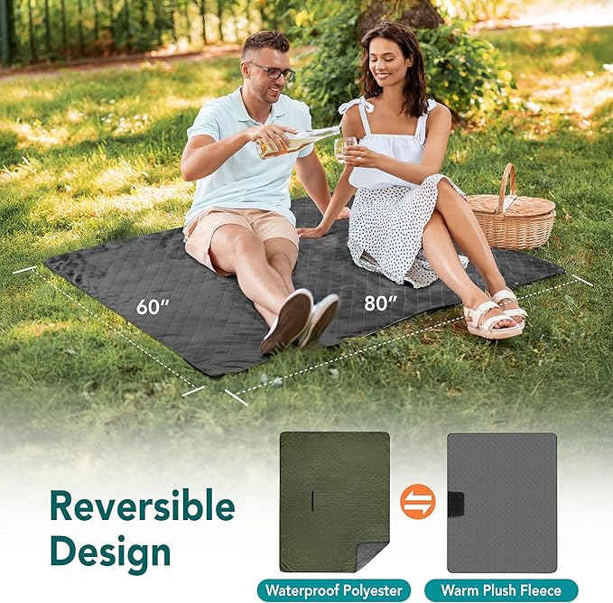 - 100% WATERPROOF AND WINDPROOF: This waterproof blanket outdoor has soft fleece on one side and waterproof taffeta polyester fabric on the back, keeping you dry as a picnic outdoor blanket This windproof stadium blanket can also be wrapped around you and your friends in wet cold weather. Perfect for camping, beach, sports, concert, festivals, hiking, road trips, car and even as a boat blanket!