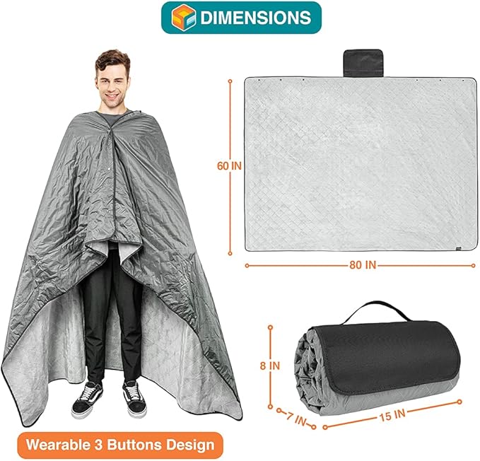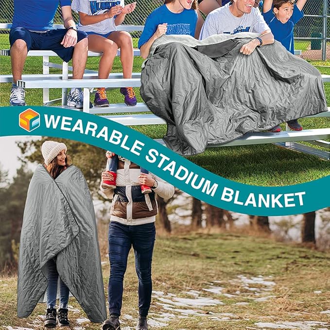 - REVERSIBLE AND WEARABLE: This sports blanket is reversible and the fleece blanket can be transformed into a waterproof poncho stadium blanket with our 3-button design to keep you cozy and dry at any sports game or festival. Big enough to share with a friend!