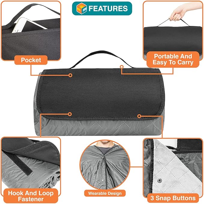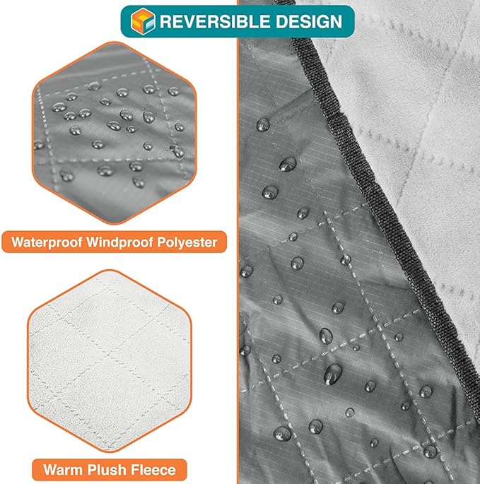 - 100% WATERPROOF AND WINDPROOF: This waterproof blanket outdoor has soft fleece on one side and waterproof taffeta polyester fabric on the back, keeping you dry as a picnic outdoor blanket This windproof stadium blanket can also be wrapped around you and your friends in wet cold weather. Perfect for camping, beach, sports, concert, festivals, hiking, road trips, car and even as a boat blanket!